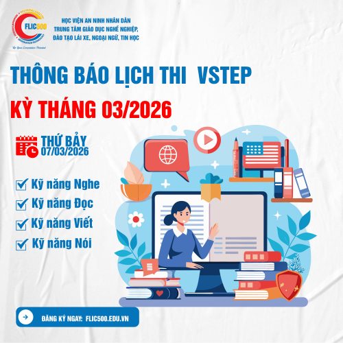 FLIC500 là cơ sở đào tạo, khảo thí cấp chứng chỉ ngoại ngữ tin học có hơn 25 năm kinh nghiệm và là đơn vị duy nhất của Bộ Công an được Bộ Giáo dục và Đào tạo cấp phép tổ chức thi, cấp chứng chỉ đánh giá năng lực tiếng Anh theo Khung năng lực ngoại ngữ 6 bậc dùng cho Việt Nam (VSTEP) FLIC500 sở hữu hệ thống cơ sở vật chất phục vụ đào tạo, khảo thí chuẩn quốc gia, quốc tế. 100% giáo viên ngoại ngữ có trình độ C1, C2 và IELTS từ 7.0 trở lên, có chứng chỉ chấm Nói, Viết và ra đề thi tiếng Anh theo chuẩn Quốc gia. FLIC500 vận hành các chương trình đào tạo, bồi dưỡng ngoại ngữ, tin học bản quyền, được thẩm định bởi các chuyên gia ngôn ngữ, công nghệ thông tin hàng đầu, đảm bảo sự đa dạng, phù hợp với mọi nhu cầu trình độ của người học.