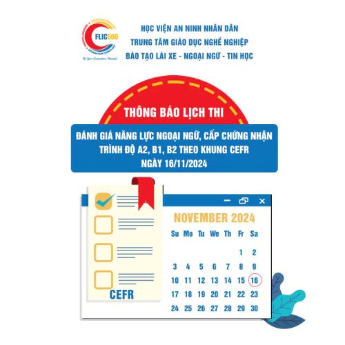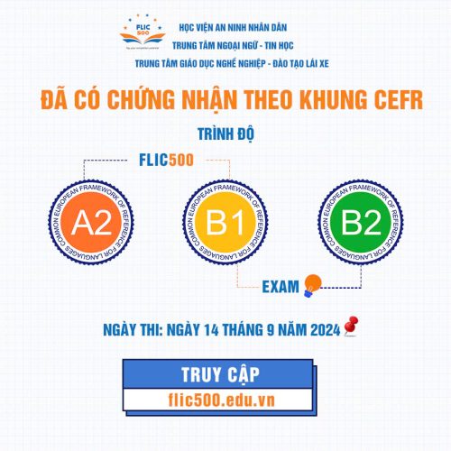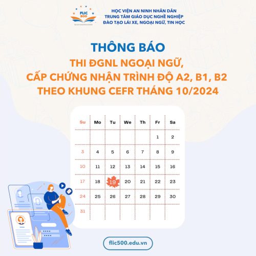 Trung tâm Giáo dục nghề nghiệp, đào tạo lái xe, ngoại ngữ, tin học thuộc Học viện An ninh nhân dân thông báo lịch bồi dưỡng, thi đánh giá năng lực và cấp chứng nhận tiếng Anh trình độ A2, B1, B2 theo Khung tham chiếu chung Châu Âu (CEFR) tháng 10/2024 như sau: 1. Lịch......