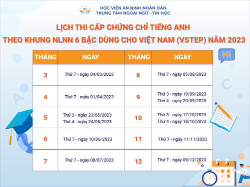 Trung tâm Ngoại ngữ – Tin học Học viện An ninh nhân dân (FLIC500) thông báo lịch bồi dưỡng, thi cấp chứng nhận đánh giá năng lực tiếng Anh trình độ A1, A2, B1, B2 theo Khung tham chiếu chung Châu Âu (CEFR) tháng 12/2022 như sau: 1. Lịch thi dự kiến: ngày 18/12/2022 2. Hồ......