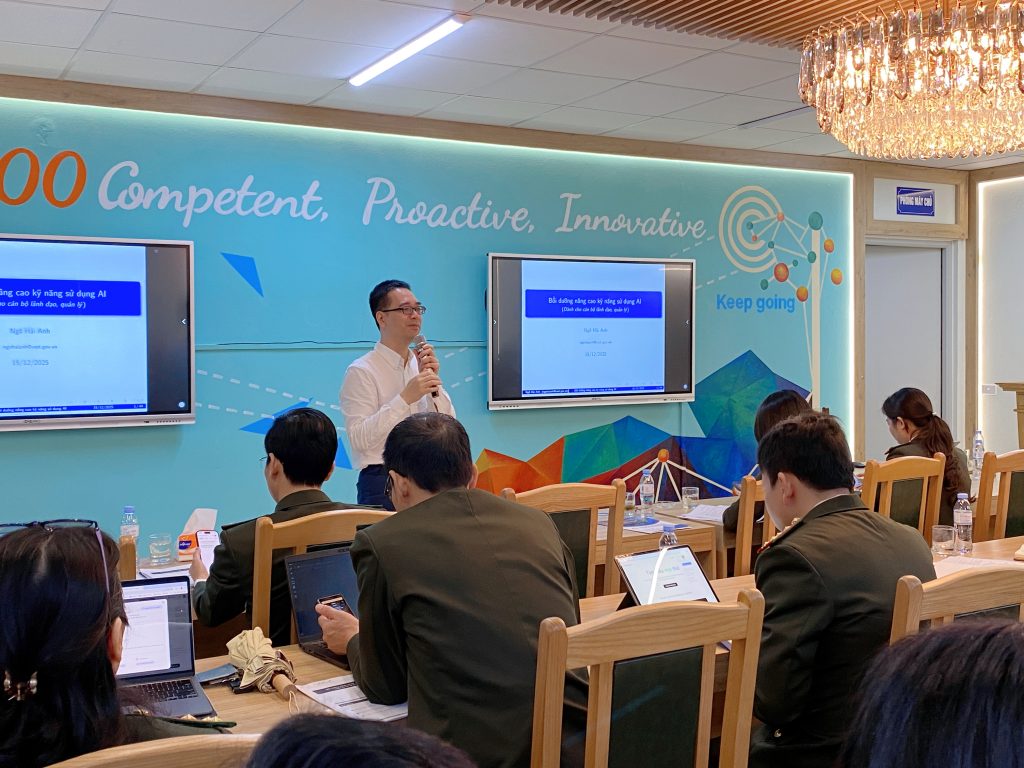 Nhằm đáp ứng yêu cầu đó, Học viện An ninh nhân dân (ANND) tổ chức Lớp bồi dưỡng ứng dụng trí tuệ nhân tạo (AI) trong lãnh đạo, quản lý và giảng dạy dành cho lãnh đạo, giảng viên và cán bộ chuyên môn. Theo đó Học viện ANND giao Trung tâm Giáo dục nghề nghiệp, đào tạo lái xe, ngoại ngữ, tin học (GDNN) tham mưu tổ chức lớp học. Trong quá trình tổ chức lớp học, Trung tâm GDNN phối hợp với các đơn vị chức năng của Học viện, xây dựng kế hoạch, nội dung chương trình, điều phối giảng viên, hoàn thiện công tác tổ chức, quản lý và bảo đảm các điều kiện phục vụ giảng dạy, học tập.