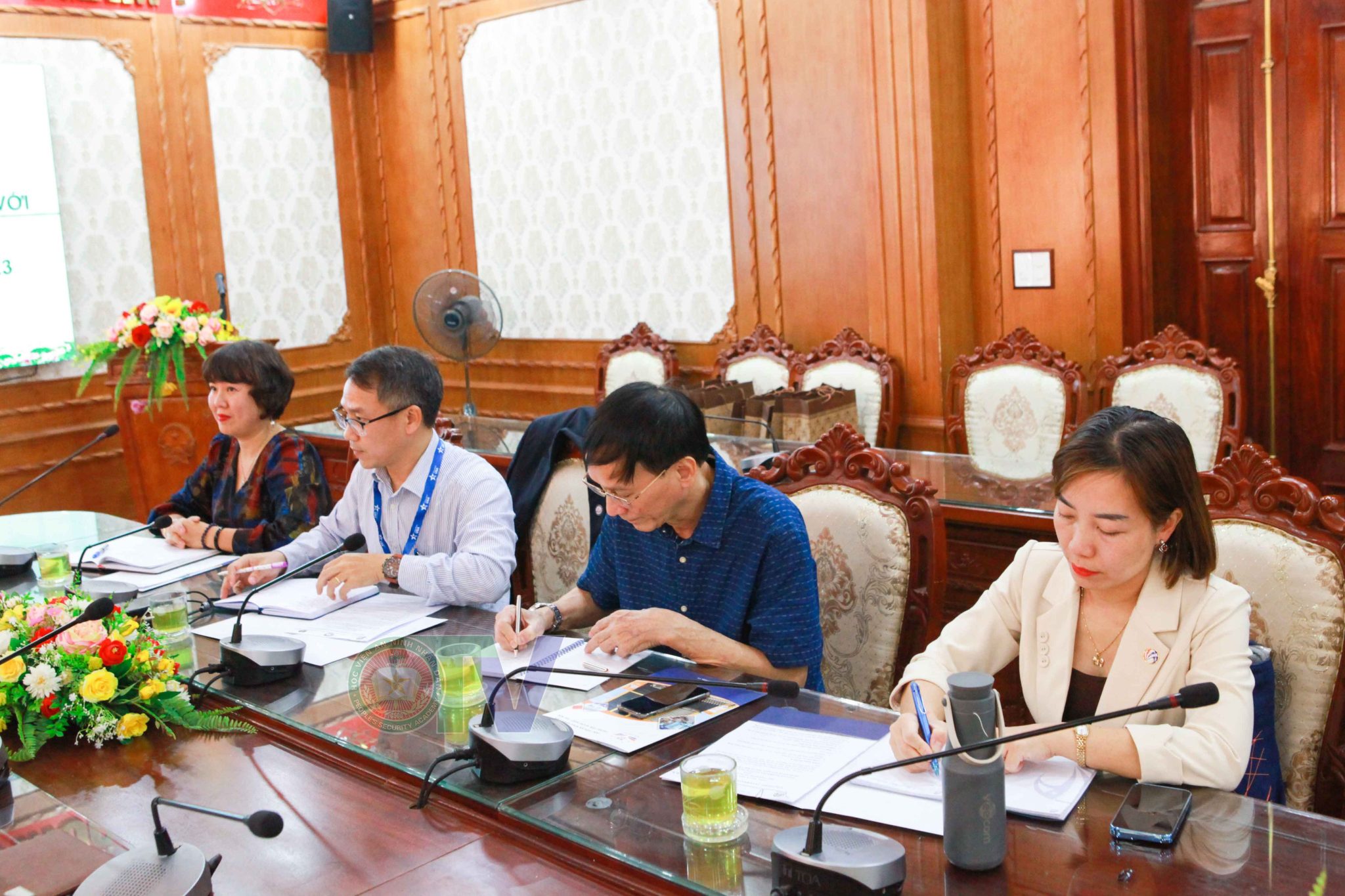 Về phía Học viện An ninh nhân dân có sự tham dự của Đại tá Nguyễn Văn Thiết – Phó Giám đốc Học viện An ninh nhân dân; Thượng tá Nguyễn Thị Phương Lan – Giám đốc Trung tâm Ngoại ngữ – Tin học; Đại tá Nguyễn Văn Nghiêm – Trưởng phòng Hậu cần; Thượng tá Phạm Quốc Dũng – Chánh Văn phòng; Trung tá Nguyễn Thị Ái Vân – Phó Trưởng phòng Tổ chức cán bộ; Trung tá Đặng Nghiêm Thu Nga – Phó Giám đốc Trung tâm Ngoại ngữ – Tin học; Thiếu tá Mai Văn Trọng – Phó Giám đốc Trung tâm Ngoại ngữ – Tin học;…