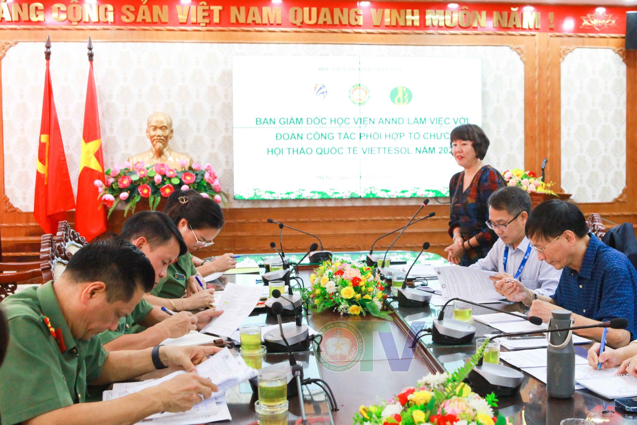 Ngày 13/10/2022 vừa qua, Đoàn Công tác của Ban Quản lý Đề án Ngoại ngữ quốc gia, Phân hội giảng dạy tiếng Anh Việt Nam (VietTESOL) cùng Văn phòng tiếng Anh khu vực (RELO), Đại sứ quán Hoa Kỳ đã tới thăm và làm việc với Học viện An ninh nhân dân, đồng thời thăm quan cơ sở vật chất Học viện nhằm phối hợp tổ chức Hội thảo quốc tế VietTESOL năm 2023 tại Học viện An ninh nhân dân.