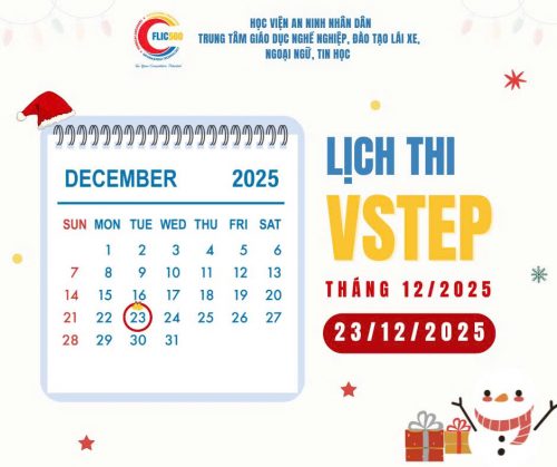 Trung tâm Giáo dục nghề nghiệp, đào tạo lái xe, ngoại ngữ, tin học thuộc Học viện An ninh nhân dân thông báo lịch thi đánh giá năng lực tiếng Anh Khung năng lực 6 bậc dùng cho Việt Nam (VSTEP) – kỳ tháng 12/2025 như sau: Thí sinh có nguyện vọng dự thi vui......