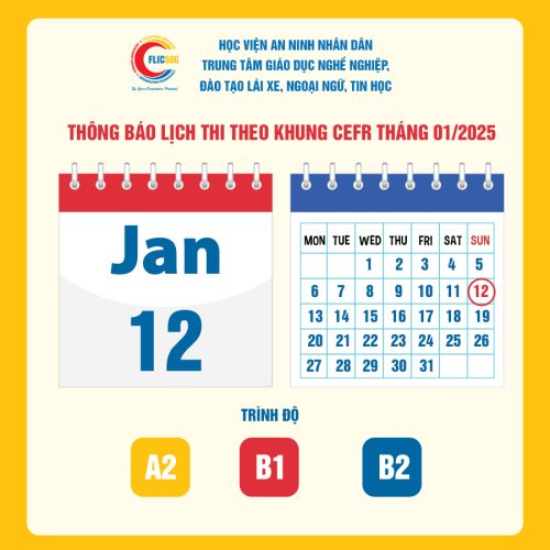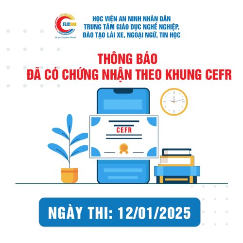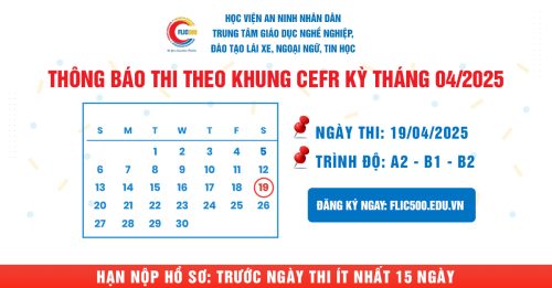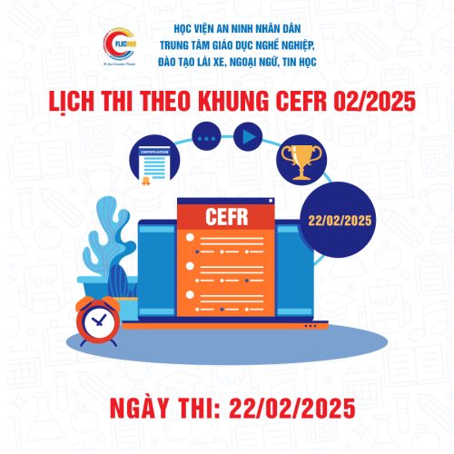 Trung tâm Giáo dục nghề nghiệp, đào tạo lái xe, ngoại ngữ, tin học thuộc Học viện An ninh nhân dân thông báo lịch bồi dưỡng, thi đánh giá năng lực và cấp chứng nhận tiếng Anh trình độ A2, B1, B2 theo Khung tham chiếu chung Châu Âu (CEFR) tháng 12/2024 như sau: 1.......