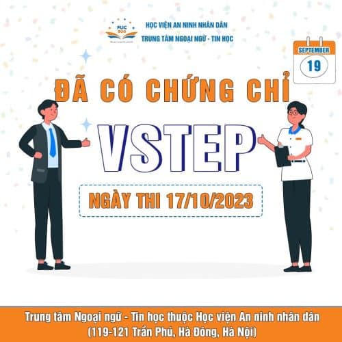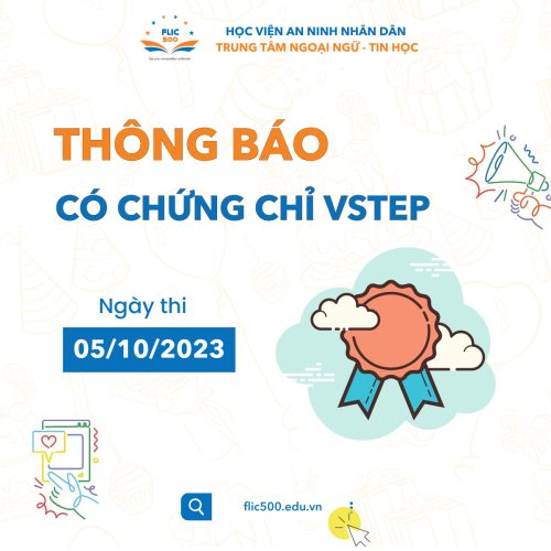 Trung tâm Ngoại ngữ – Tin học Học viện An ninh nhân dân (FLIC500) thông báo lịch thi đánh giá năng lực tiếng Anh Khung năng lực 6 bậc dùng cho Việt Nam (VSTEP) – kỳ tháng 10/2023 như sau: Thí sinh có nguyện vọng dự thi vui lòng đăng ký tại: https://flic500.edu.vn/dang-ky-hoc-thi-tieng-anh-khung-nlnnvn-vstep/ Lịch thi dự kiến: 17/10/2023......