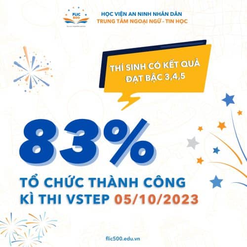 Ngày 05/10/2023 vừa qua, Trung tâm Ngoại ngữ – Tin học thuộc Học viện An ninh (FLIC500) đã tổ chức thành công Kỳ thi cấp chứng chỉ tiếng Anh theo Khung năng lực ngoại ngữ 6 bậc dùng cho Việt Nam (VSTEP) – kỳ thi 05/10/2023. FLIC500 trân trọng cảm ơn các thí sinh đã......
