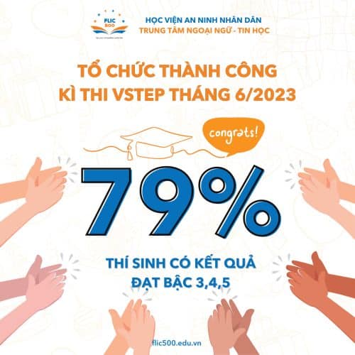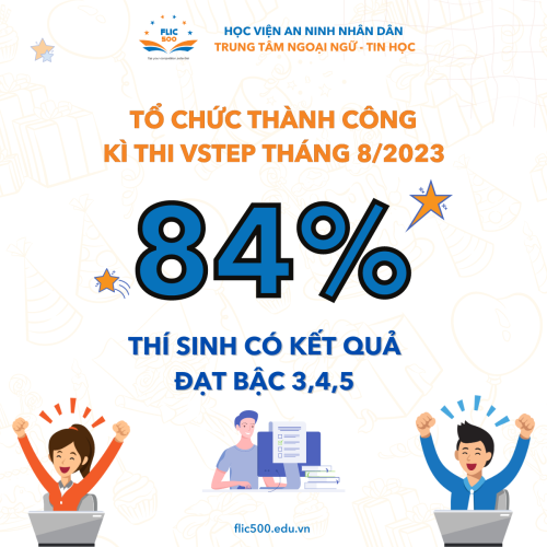 Ngày 08/07/2023 vừa qua, Trung tâm Ngoại ngữ – Tin học thuộc Học viện An ninh (FLIC500) đã tổ chức thành công Kỳ thi cấp chứng chỉ tiếng Anh theo Khung năng lực ngoại ngữ 6 bậc dùng cho Việt Nam (VSTEP) – kỳ tháng 08/2023 – ngày thi 05/08/2023. FLIC500 trân trọng cảm ơn......