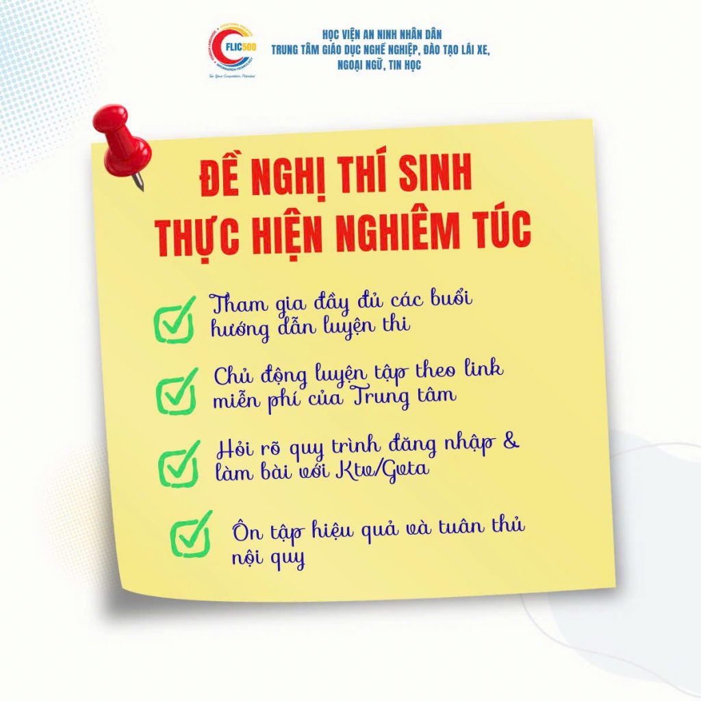 3. Nghiêm túc ôn thi hiệu quả, nghiêm chỉnh chấp hành nội quy thi của Trung tâm và Học viện ANND.