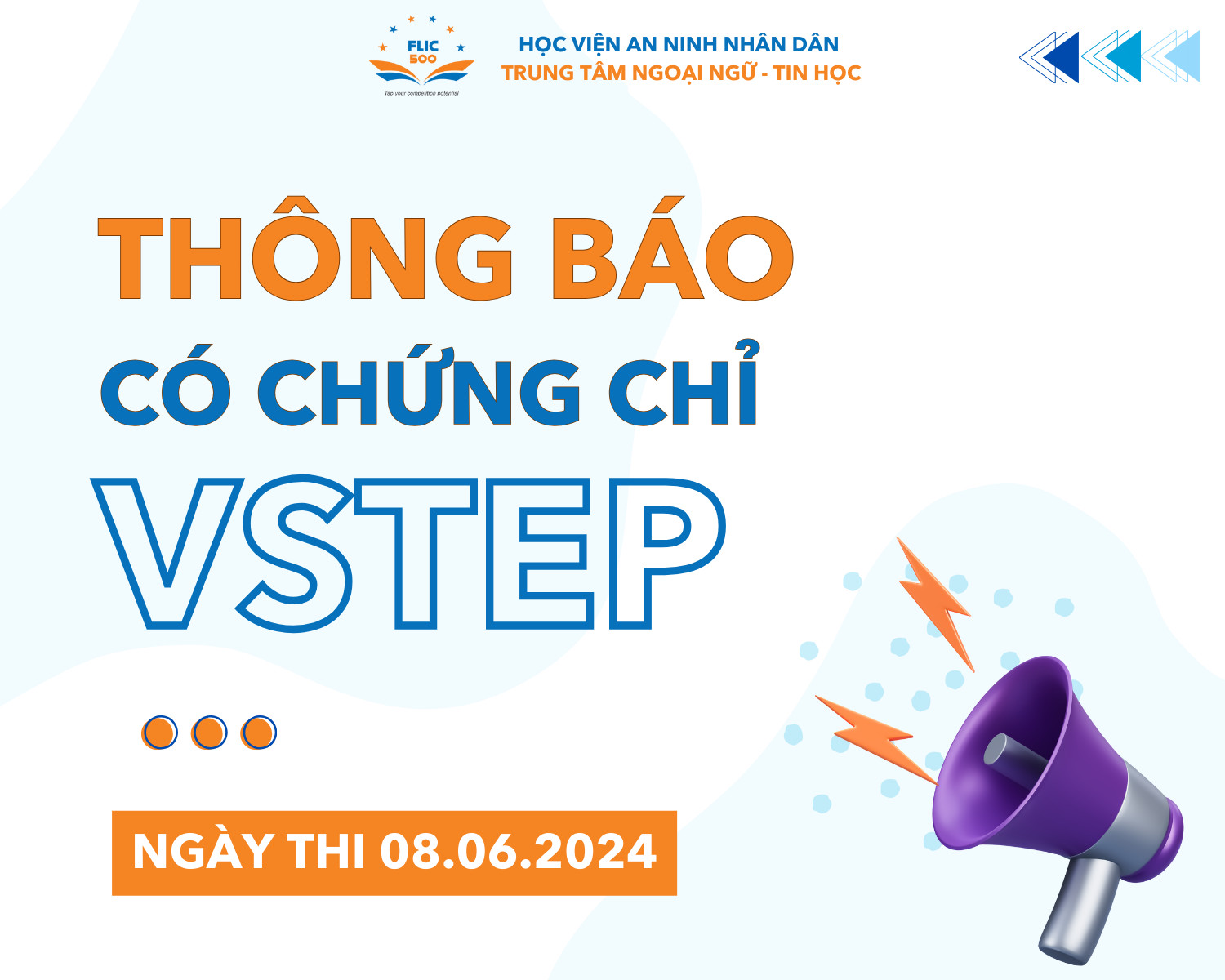 Trung tâm Ngoại ngữ – Tin học thuộc Học viện An ninh nhân dân (FLIC500) thông báo đã có chứng chỉ Kỳ thi đánh giá năng lực tiếng Anh theo khung năng lực 6 bậc dùng cho Việt Nam dành cho các thí sinh tham dự kỳ thi ngày 08/06/2024.