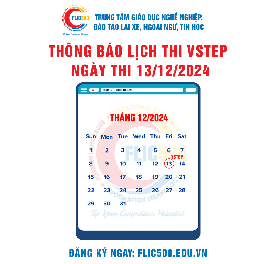 Thí sinh có nguyện vọng dự thi vui lòng đăng ký tại: https://flic500.edu.vn/dang-ky-hoc-thi-tieng-anh-khung-nlnnvn-vstep/