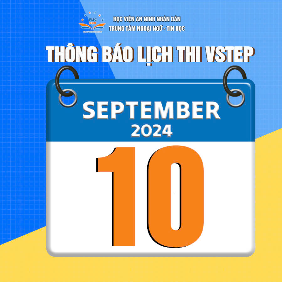 Trung tâm Ngoại ngữ – Tin học Học viện An ninh nhân dân (FLIC500) thông báo lịch thi đánh giá năng lực tiếng Anh Khung năng lực 6 bậc dùng cho Việt Nam (VSTEP) – kỳ tháng 09/2024 như sau: